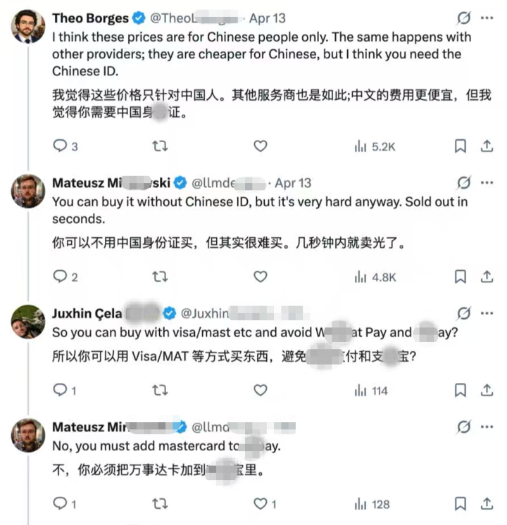 另一边,在海外,却有不少外国人聚集在社交平台研究如何绑定支付宝、微信支付、搞定中文验证码、“伪装成”中国人去顺利买到智谱GLM-5.1“国行版”套餐。